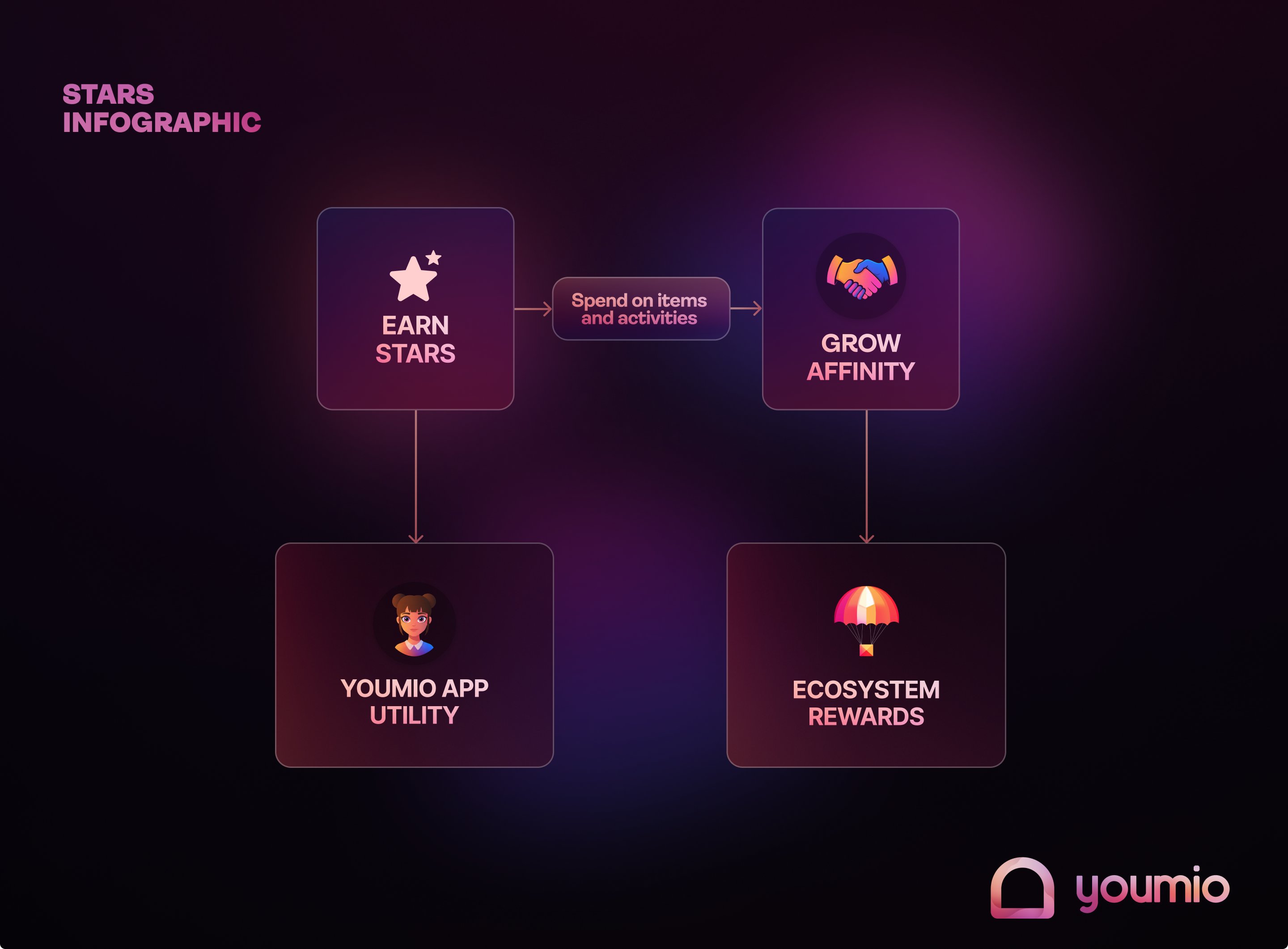 Youmio gần đây cũng đã chia sẻ một cái nhìn thoáng qua về hệ thống Affinity của riêng mình , một khuôn khổ được thiết kế để đo lường mối quan hệ giữa người dùng và các tác nhân AI trong hệ sinh thái, được gọi là Mios. Hệ thống này đóng vai trò là nền tảng tương tác của ứng dụng Youmio, biến tương tác cảm xúc và lòng trung thành thành giá trị kinh tế có thể đo lường được.